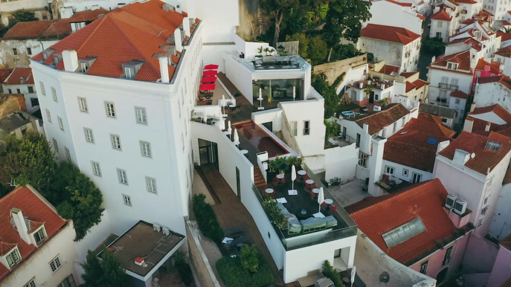 Memmo Alfama is the strongest romantic-character pick on this list. Officially, it promises unmatched views of Alfama and the Tagus and sits steps from Lisbon Cathedral and São Jorge Castle, which makes it one of the clearest “you are in Lisbon” stays here. It is less about full-service luxury and more about atmosphere.