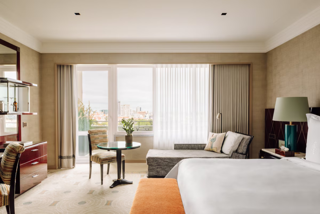 If your priority is classic big-name luxury rather than old-town intimacy, Four Seasons Hotel Ritz Lisbon is the obvious top-end choice. Officially, it sits beside Eduardo VII Park and pairs spacious rooms with an award-winning spa and Michelin-starred CURA, while editorial coverage still treats it as Lisbon’s most iconic luxury address. It also offers meaningful family amenities, which makes it more versatile than some purely couples-focused luxury hotels.